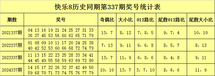沧海快乐8第2025337期历史同期奖号尾数分析
